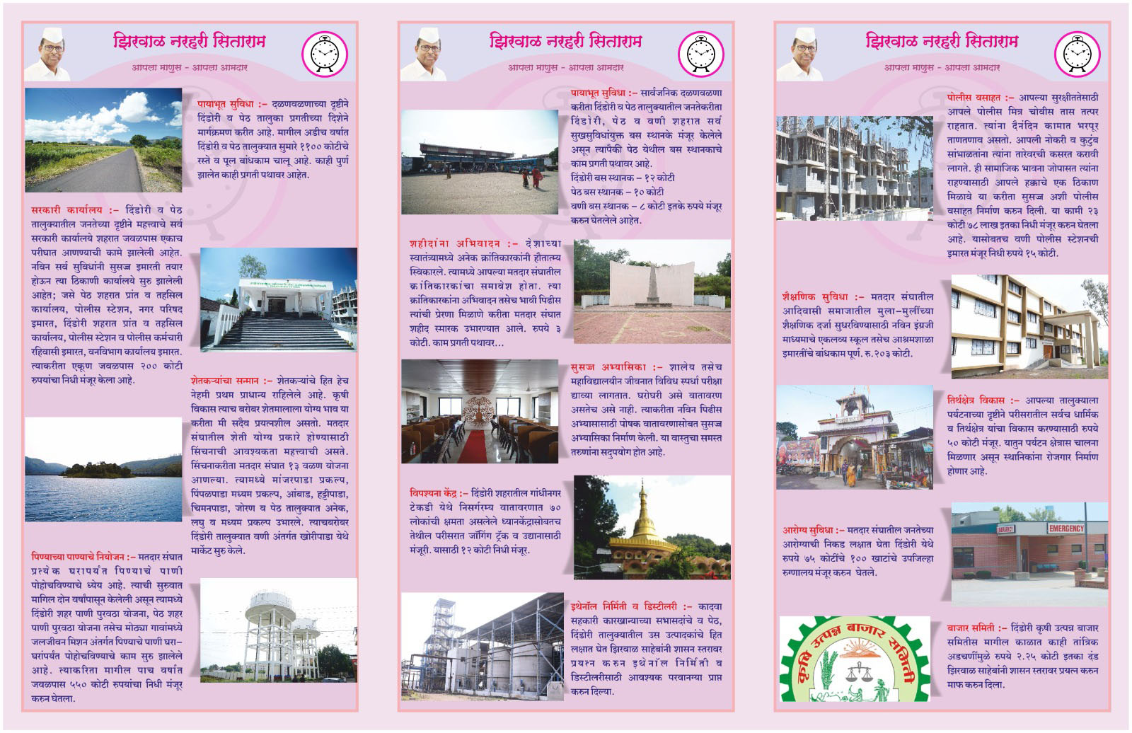 आपल्या कार्यकाळात, माननीय नरहरी झिरवळ यांनी नेहमीच नेतृत्व, जबाबदारी आणि व्यावहारिक दृष्टिकोन दाखवला आहे. त्यांच्या कार्यामुळे पेठ-दिंडोरीतील नागरिकांचा विश्वास आणि प्रेम त्यांनी मिळवले असून, ते या भागाच्या प्रगतीचे आणि विकासाचे प्रतीक ठरले आहेत.